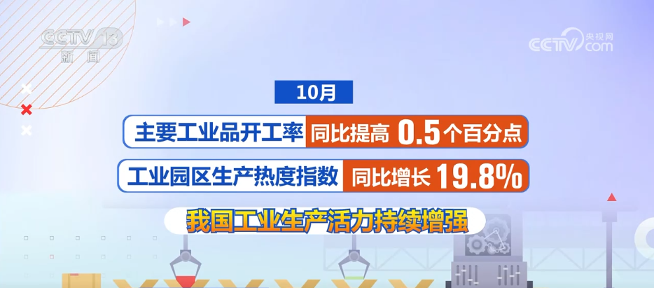 央视新闻:10月份最新经济数据即将发布。我国的经济表现如何?从国家信息中心公布的消费、工业、外贸等方面先行指标可以看出,经济延续了稳定发展的良好态势,经济长期基础更加稳固。 10月,消费市场保持平稳向好势头,形成“沉浸式市场持续拓展”和“文化体验旅游消费引领”双轮驱动的新格局。线下消费10月份消费热度指数同比增长17.3%。国家信息中心最新数据显示,10月份,线下消费增长良好,尤其是三线及以下城市。线下消费热度指数同比增长17.3%,其中一线、二线城市同比增长18.9%和14.5%,三线及以下城市同比增长31.2%。国家发改委宏观经济研究院研究员 张林山:当前,消费市场结构性亮点明显,增长动力从传统市场向大盘探底延伸。这背后是数字经济的人口规模和“青春回归”带来的消费新理念,共同驱动县域市场品质升级。 “双节”叠加下文化旅游消费表现我们的主义尤其值得注意。八天国庆中秋假期,全国出游人数8.88亿人次,国内旅游总支出8090.06亿元,均明显高于去年国庆假期。受此拉动,10月份全国跨城市迁移规模指数同比增长22.4%,增幅比上月扩大14.9个百分点。消费和服务业已成为拉动内需的重要引擎。国家信息中心大数据发展部综合部副主任司星玉官:消费市场正在形成“不断拓展下沉市场”和“引领文旅消费体验”双轮驱动的新格局。这一深层次结构为经济复苏注入了坚实的新动能。随着各项促进消费政策的出台继续准确落实,我国消费市场将不断建立,实现提质增效,消费对经济增长的拉动作用增强。基础设施建设的明显热度是中部地区最为活跃。看完消费,我们去热门项目现场查看一下。 10月份,基础设施建设开工率、工作量环比增长。其中,中部地区开工率环比增幅最高,在全国发展格局中的“脊梁”作用不断强化。数据显示,10月份,全国工程机械平均开工率环比增长1.4%,工作量环比增长5.25%。全国22个省份工作量环比增加。专家表示,随着全国各地天气逐渐转凉十月份以后气温转冷,随着国庆、中秋假期的影响,施工条件面临诸多不利因素。即便如此,运行率和工作量仍然达到了环境的水平。双增体现出10月份全国基建投资在季节性、节假日干扰下有效反弹,体现了经济的强劲稳定性。从设备来看,最繁忙的项目是起重设备,开工率为70.74%,这说明大量基建项目已进入集中竣工阶段,中部地区开工率环比增幅最高。挖掘设备也在提速,各主要设备类型开工率排名环比上升。张林山表示,作为“基础设施建设的先行者”,挖掘机开工率,特别是中部地区表现突出,明确表明新项目的密集建设。 “结束”与“开始”的热接力充分印证了我国基建活动的持续活跃性和经济发展的内在稳定性。生产呈现强劲强度,经济继续稳中向好发展。最后我们来到工业园区和保税区。 10月份,工业生产活力持续回升,外贸先行指标加速回升,我国经济继续平稳发展。国家信息中心最新数据显示,10月份主要工业产品开工率同比增长0.5个百分点,工业园区热度指数同比增长19.8%。我国工业生产规模将继续增长。工资反映工业企业用工情况的指数同比增长8.1%,企业用工需求持续增长。初创企业经营活力指数同比增长25.7%,创新技术经营活力指数同比增长24.4%。初创企业和创新企业发展势头强劲,活力加速释放。国家发改委市场与价格研究所研究员 刘芳:当前,稳就业、稳经济的政策措施不断落实,一定程度上带动了装备制造业、高技术制造业等行业的发展速度。同时,各地各部门因地制宜加快培育发展新生产力,激发工业经济活力被完全释放出来。此外,作为反映外贸活力的先行指标,10月份保税区游客流指数同比增长17.7%,增速比9月份提高7.0个百分点。 23个省份增速同比提高,比9月份增加11个。由于近期中美经贸关系呈现下滑趋势,预计未来外贸仍将保持较高的韧性。邢玉观表示,总体来看,10月份我国经济继续稳中向好发展。国家经济政策效应将持续显现,内生动力不断增强,经济长期增长的基础更加稳固,为后续发展奠定良好基础。