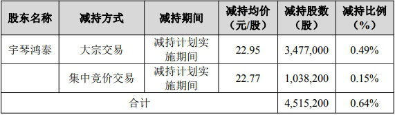 中国经济网北京11月24日电 宇芯科技(300674.SZ)11月21日晚间发布关于减持控制权结果到期及实施情况的公告。宇芯科技于2025年8月1日公告《关于控股减持的提示性公告》,因自身资金需要,公司控股股东珠海市宇勤鸿泰创业投资集团有限公司(以下简称“宇勤鸿泰”)拟减持公司股份共计10,560,855股(即不再减持) (占公司总股本的1.50%以下)通过集中竞价和区块交易方式参与。其中:拟减持公司股份不超过7,040,570股通过集中竞价方式认购股份(即不超过公司总股本的1.00%);拟通过大宗交易减持公司股份不超过3,520,285股(即不超过公司总股本的0.50%)。上述减持计划将于减持计划公告之日起十五个交易日后的九十天内实施,即2025年8月23日至11月20日。近日,公司收到玉勤宏泰出具的《关于减持结果到期及执行情况的通知函》。上述减持计划期限已届满。玉琴宏泰本次共减持451.52万股,占公司总股本的0.64%。玉琴宏泰通过大宗交易减持347.7万股,减持比例0.49%,平均减持价22.95元n/共享;通过集中竞价交易,减持103.82万股,减持比例0.15%,平均减持价格22.77元/股。经测算,玉琴宏泰合计减持金额为1.03亿元。 2025年6月3日,宇芯科技发布股东问询转让结果报告及提示性公告称,持股5%以上股东权益变动触及5%的重要倍数。显示,本次询价转让价格为18.28元/股,转让股份数量为10,560,855股。截至本公告日,上述要价及转让方案均已生效。转让方实际转让股份数量为10,560,855股,转让要价为18.28元/股,成交金额为193,052,429.40元。本次股权变更后,股东持有公司股份比例转让方玉琴宏泰持股比例由26.17%下降至24.67%,公司股权比例变动达到5%的重要倍数。 2023年1月6日,宇芯科技发布关于减持计划完成的公告。其显示,公司近日收到玉勤宏泰出具的《关于完成减持股份控制权减持的通知函》。玉琴宏泰通过大宗交易减持公司股票6,889,000股(占公司总股本的0.9688%);截至公告日,玉琴宏泰通过大宗交易减持公司股份14,000,000股(占公司总股本的1.9688%)。上述削减计划已完成。经测算,玉琴宏泰减持股份价值为191,544,490元。据测算,玉琴宏泰近34个月已释放资金4.9亿元。(编辑:田云飞)